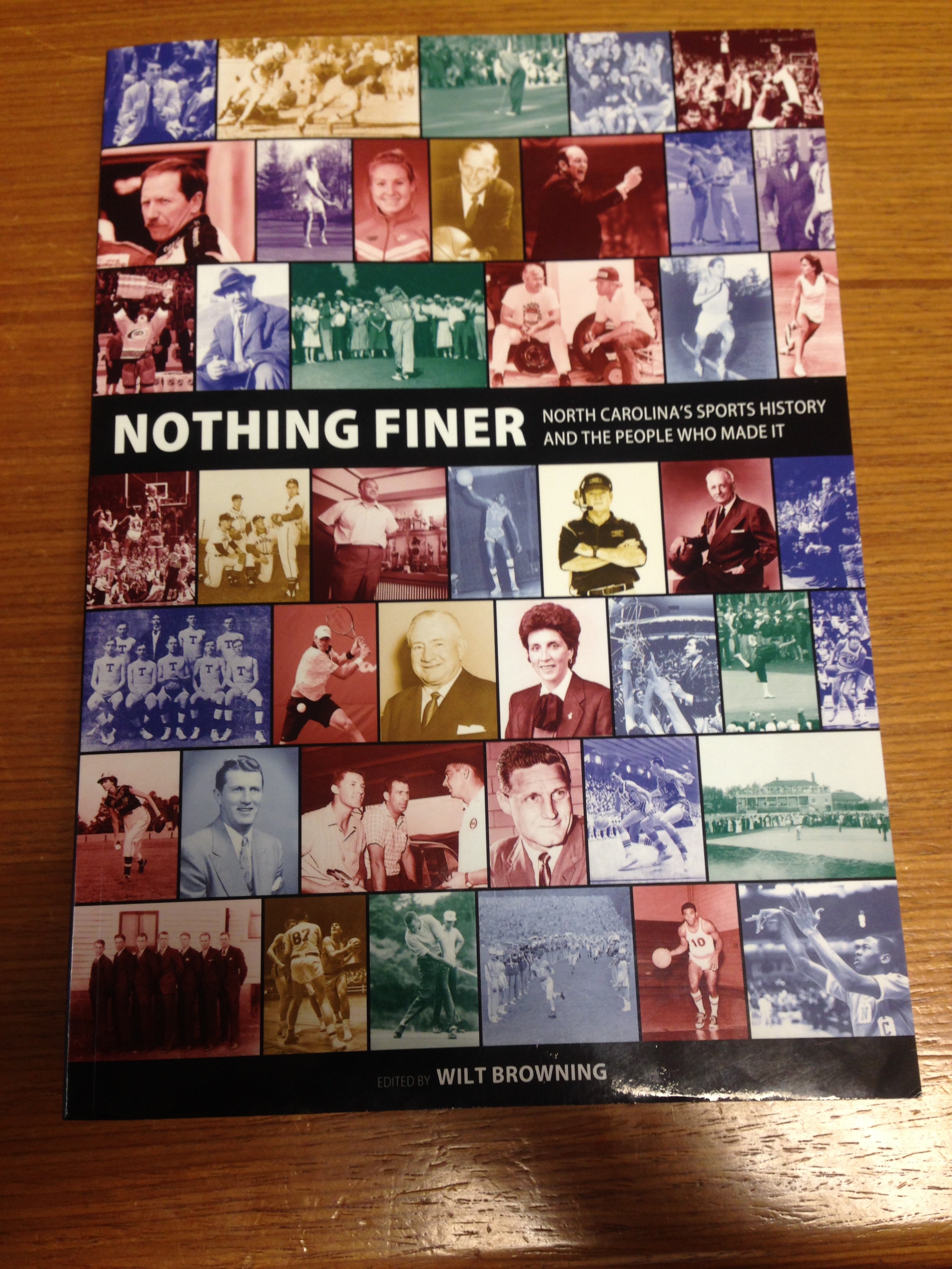 It has been quite a busy week! I finished the first book for this blog (yay!), finished two magazines last week, discovered the banker winter uniform (dark blue suit, white shirt, Carolina blue tie, brown leather shoes), started a book that I’m reviewing for my magazine, and went to a Christmas party. I hate to say it, but it may be a week or so before I’m able to start another fiction novel. For now, since I’m on a deadline to finish “Nothing Finer: North Carolina’s Sports History and the People Who Made It,” I’ll post periodic updates as a read it with interesting tidbits that I find along the way.