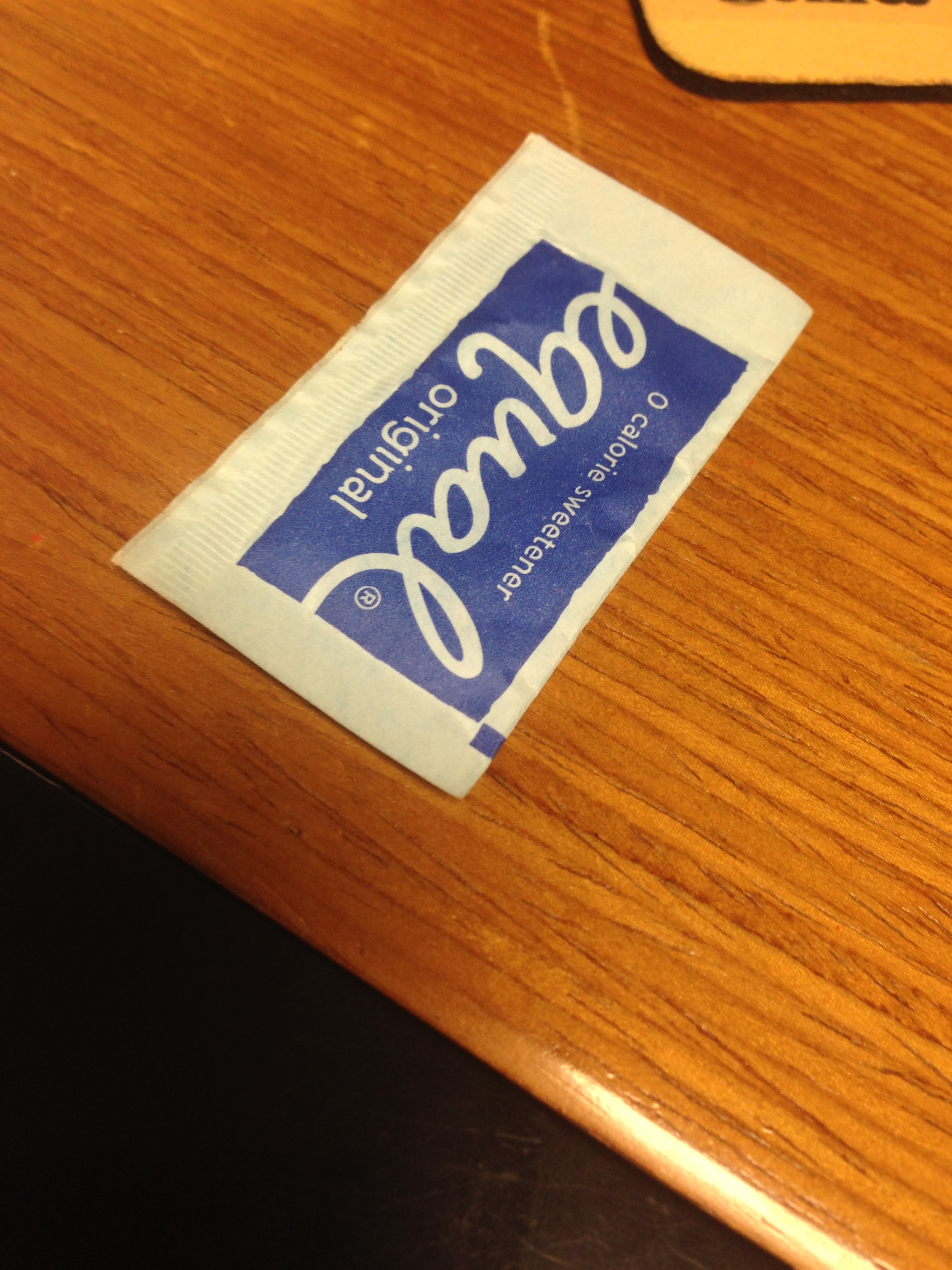 The reading is going slow, but I’m making progress and learning some tidbits along the way. And since I didn’t want to dog-ear the pages, I’m using a trusty equal packet as my bookmark.